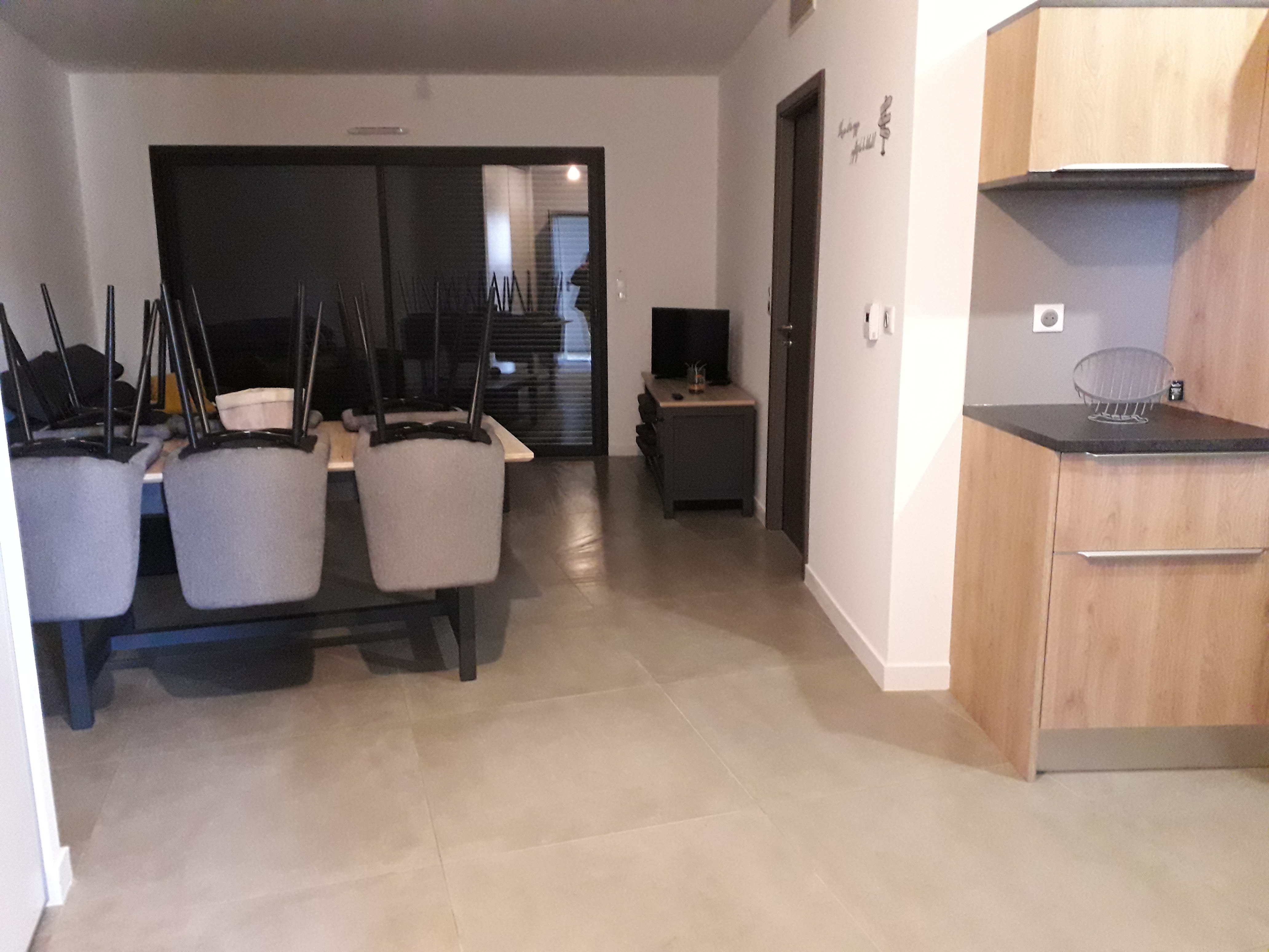 1- Une pièce à vivre avec son coin cuisine aménagé et équipé